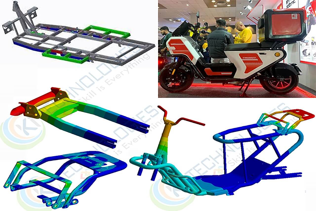 KI Technologies offers various dynamic analysis services starting from Natural Frequency Response Analysis of the Chassis Frame to validate the frame design frequency placed comfort at a level for the human body and checking the resonance frequency of the design. Harmonic analysis to validate EV design for external excitation load, Transient dynamic analysis, and random vibration analysis can also be used to validate the design for road load and shock load data.